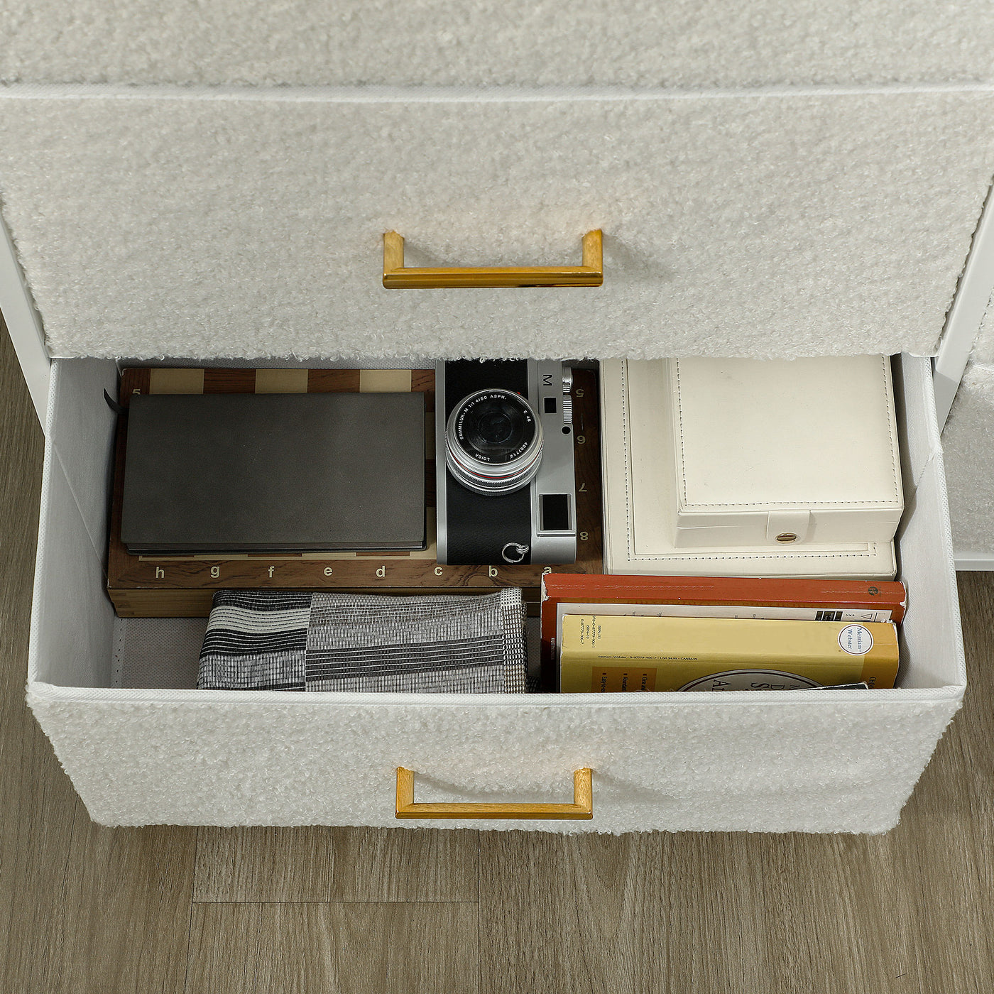 HOMCOM Chest of Drawers with 9 Fabric Drawers, Boucle Storage Organiser with Steel Frame, Fabric Dresser for Bedroom, Living Room, Hallway, Cream White - Cream