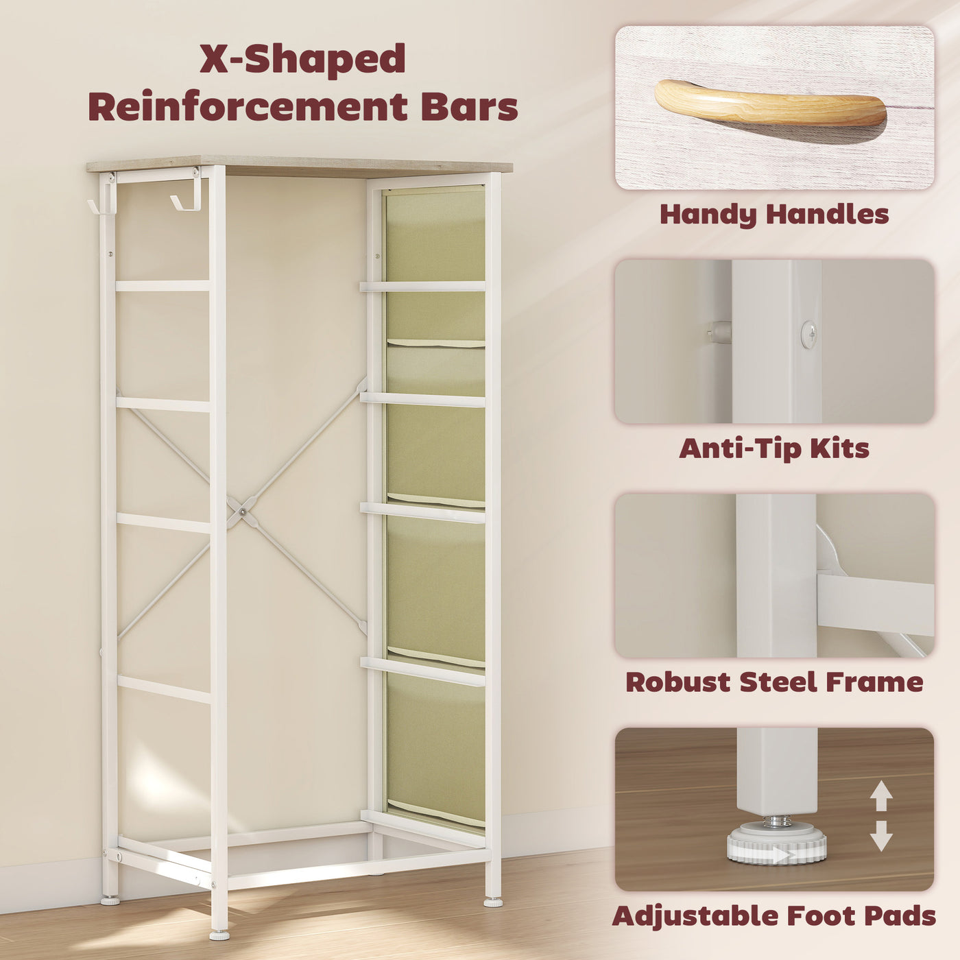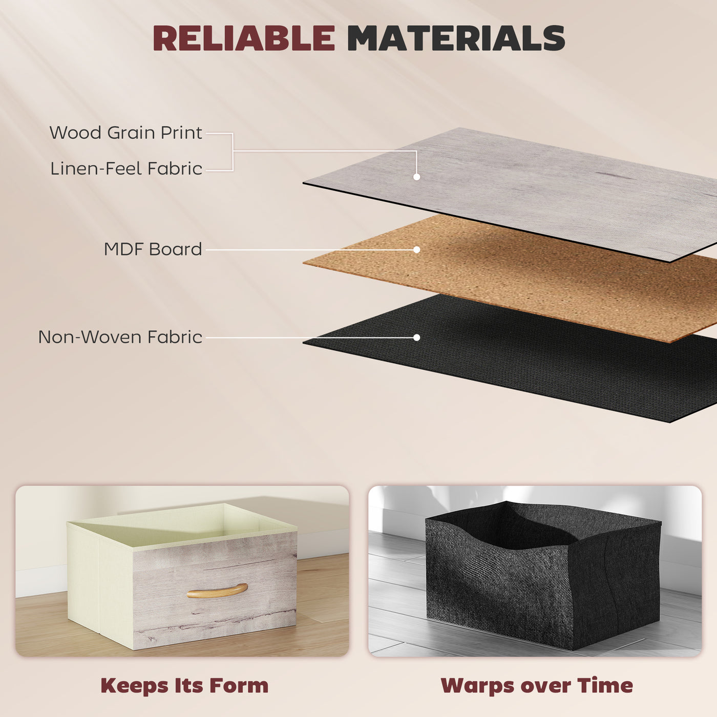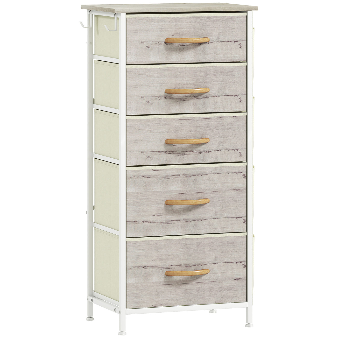 HOMCOM Chest of Five Fabric Drawers - Natural Wood Finish - Natural wood finish