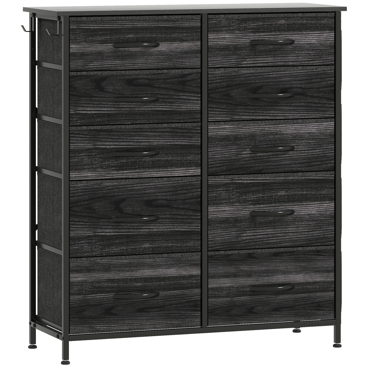 HOMCOM Chest of Ten Fabric Drawers - Black - Black