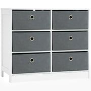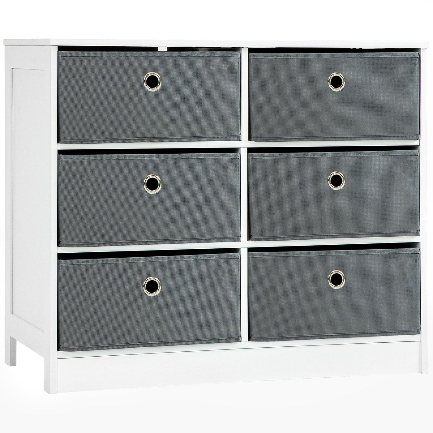 HOMCOM Chests of Drawer, Fabric Dresser Storage Cabinet with 6 Drawers for Bedroom, Living Room and Hallway, White and Grey - White