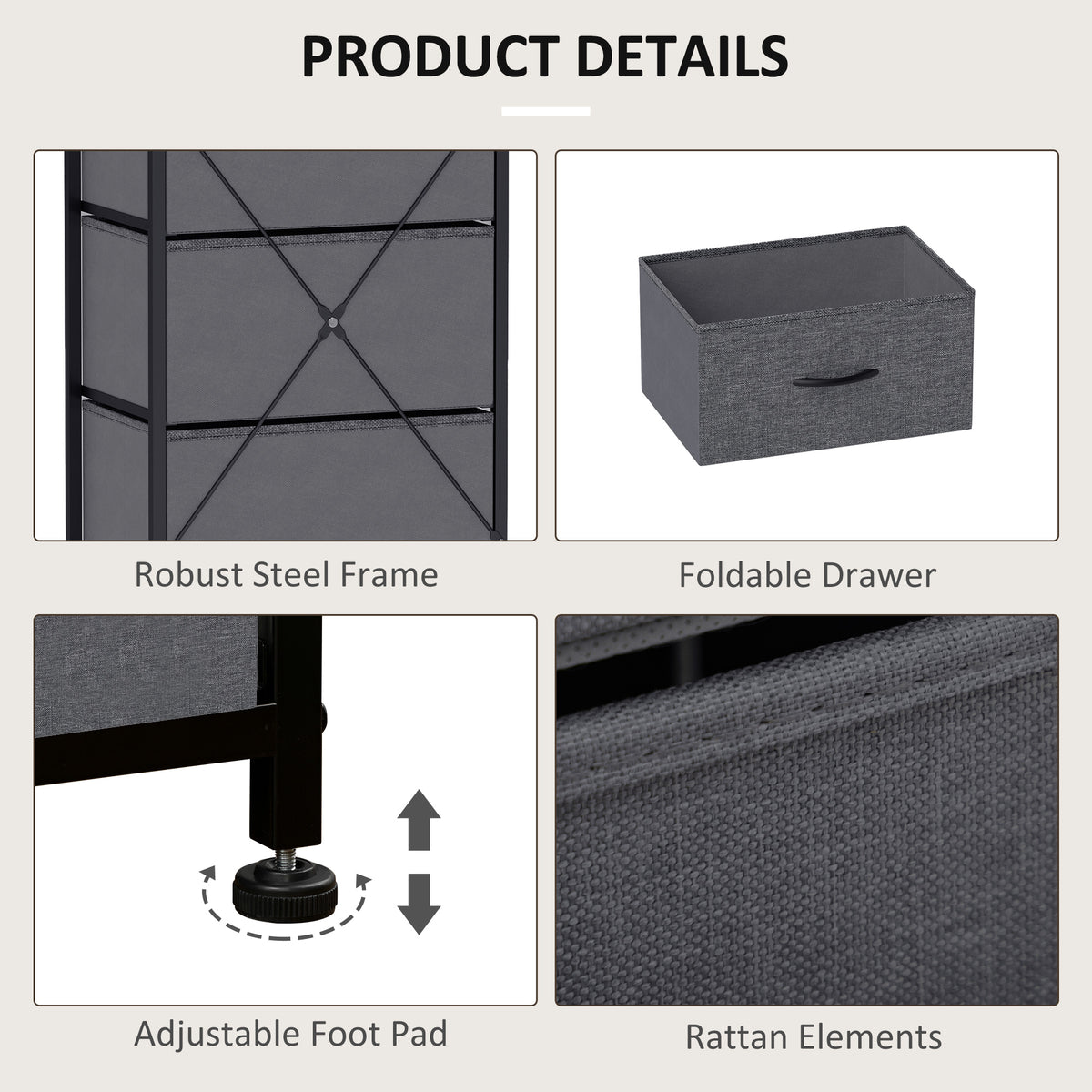 HOMCOM Fabric Chest of Drawers, Industrial Bedroom Dresser with 5 Fabric Drawers, Steel Frame and Wooden Top for Nursery, Living Room, Hallway, Dark Grey - Dark Grey