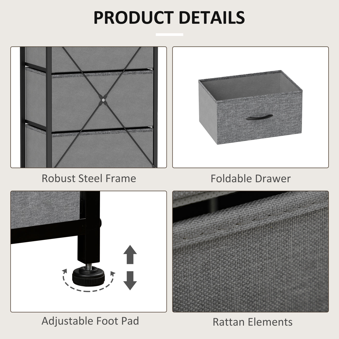 HOMCOM Fabric Chest of Drawers, Industrial Bedroom Dresser with 5 Fabric Drawers, Steel Frame and Wooden Top for Nursery, Living Room, Hallway, Rustic Brown and Grey - Rustic Brown