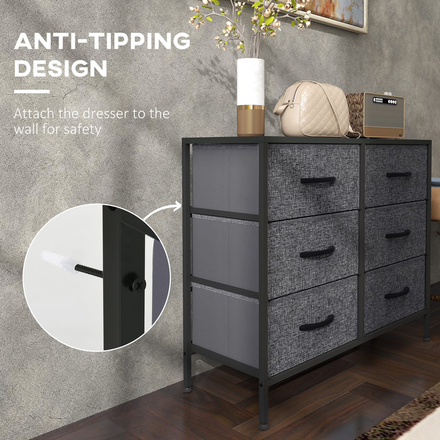 HOMCOM Fabric Chest of Drawers, Industrial Bedroom Dresser with 6 Fabric Drawers, Steel Frame and Wooden Top for Nursery, Living Room, Hallway, Black - Black