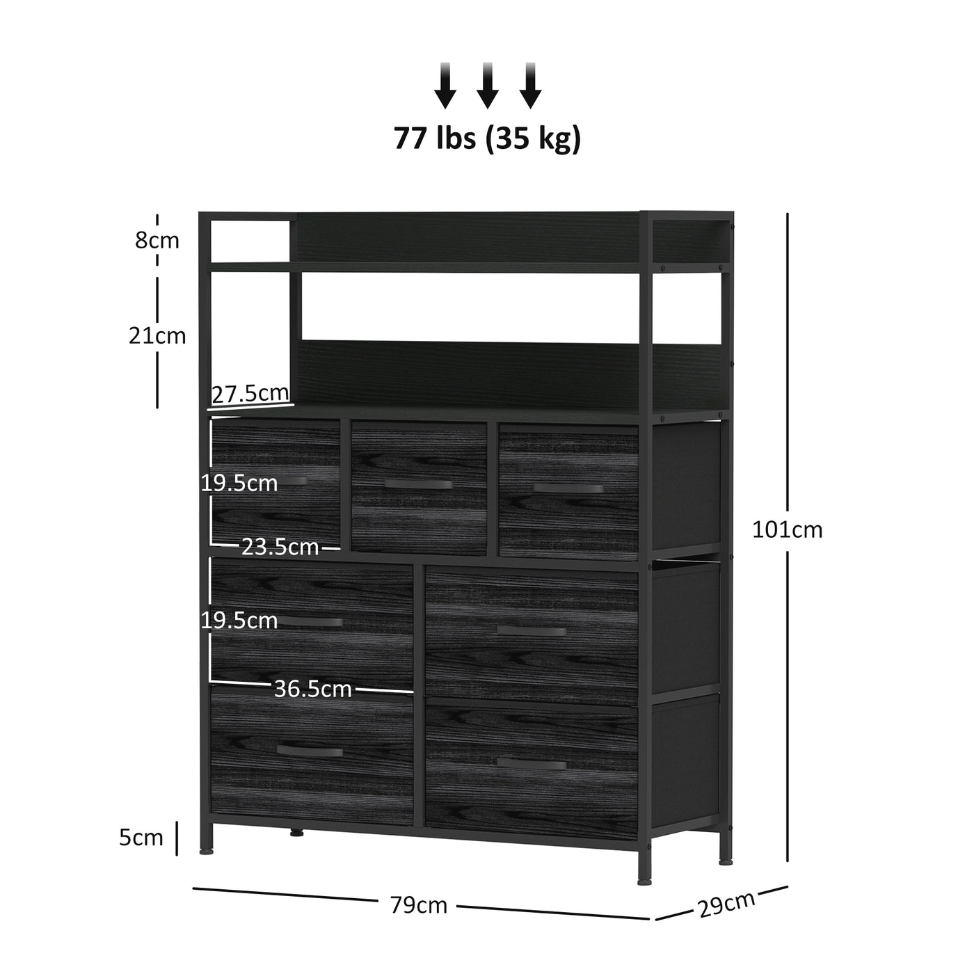 HOMCOM Rustic Chest of Seven Fabric Drawers - Black - Black