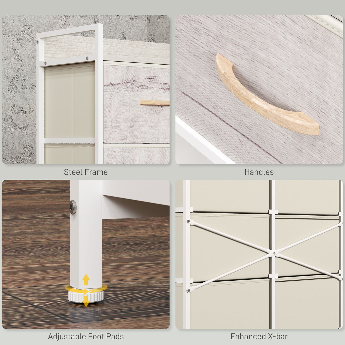 HOMCOM Rustic Chest of Six Fabric Drawers - Natural