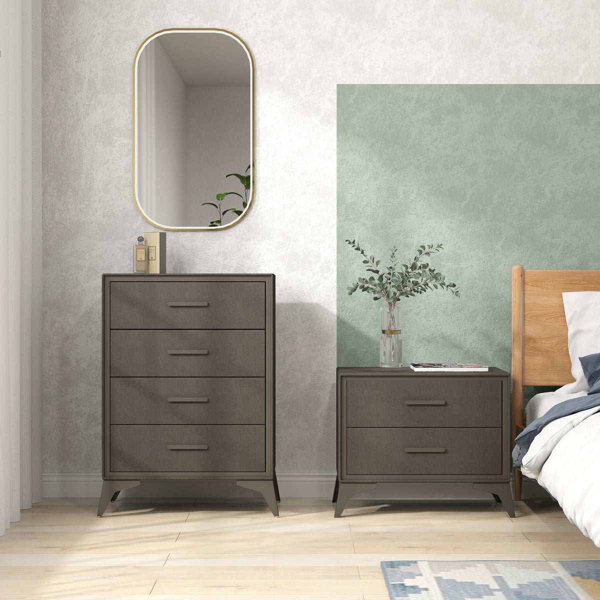 HOMCOM Velvet-Feel Chest of Four Drawers - Brown - Brown