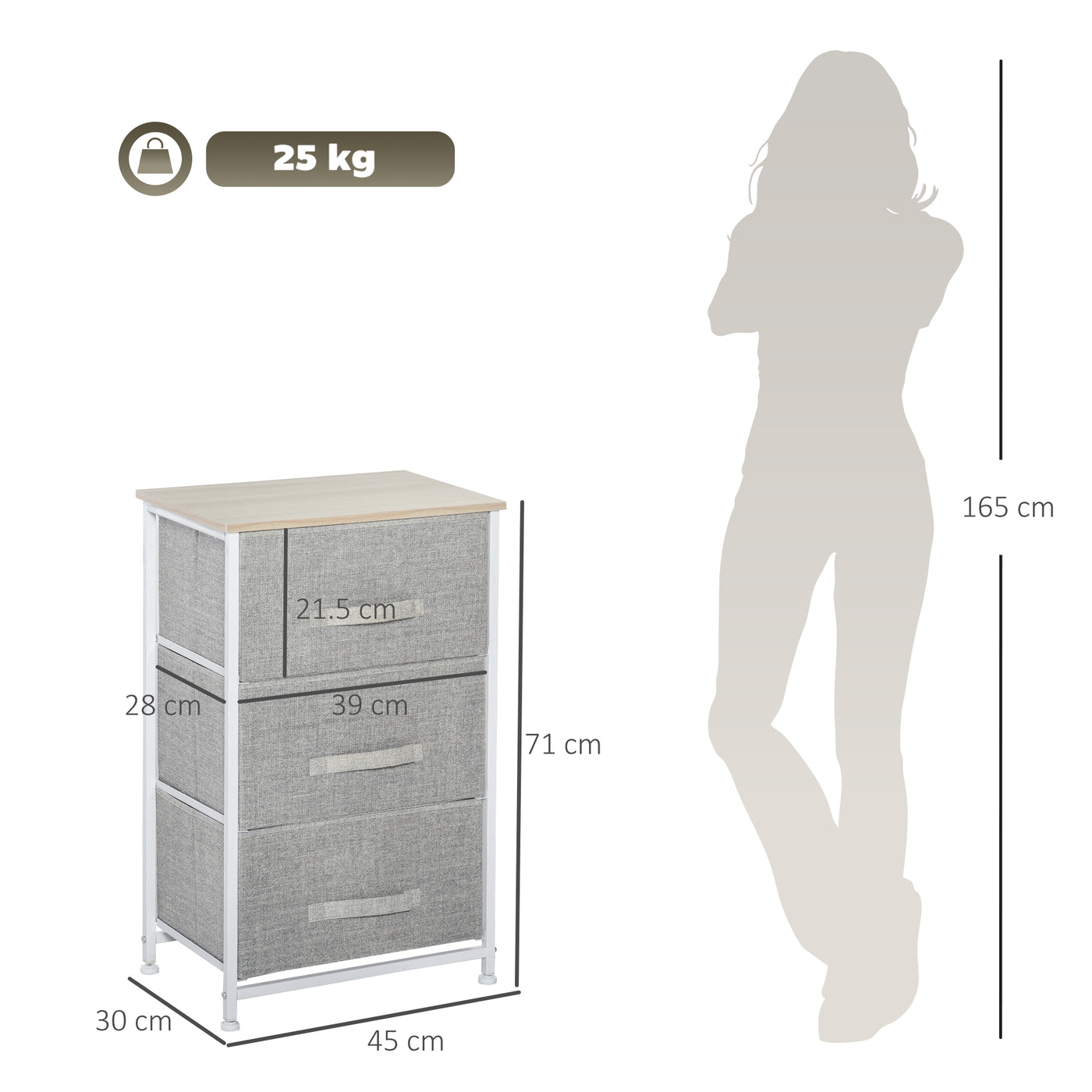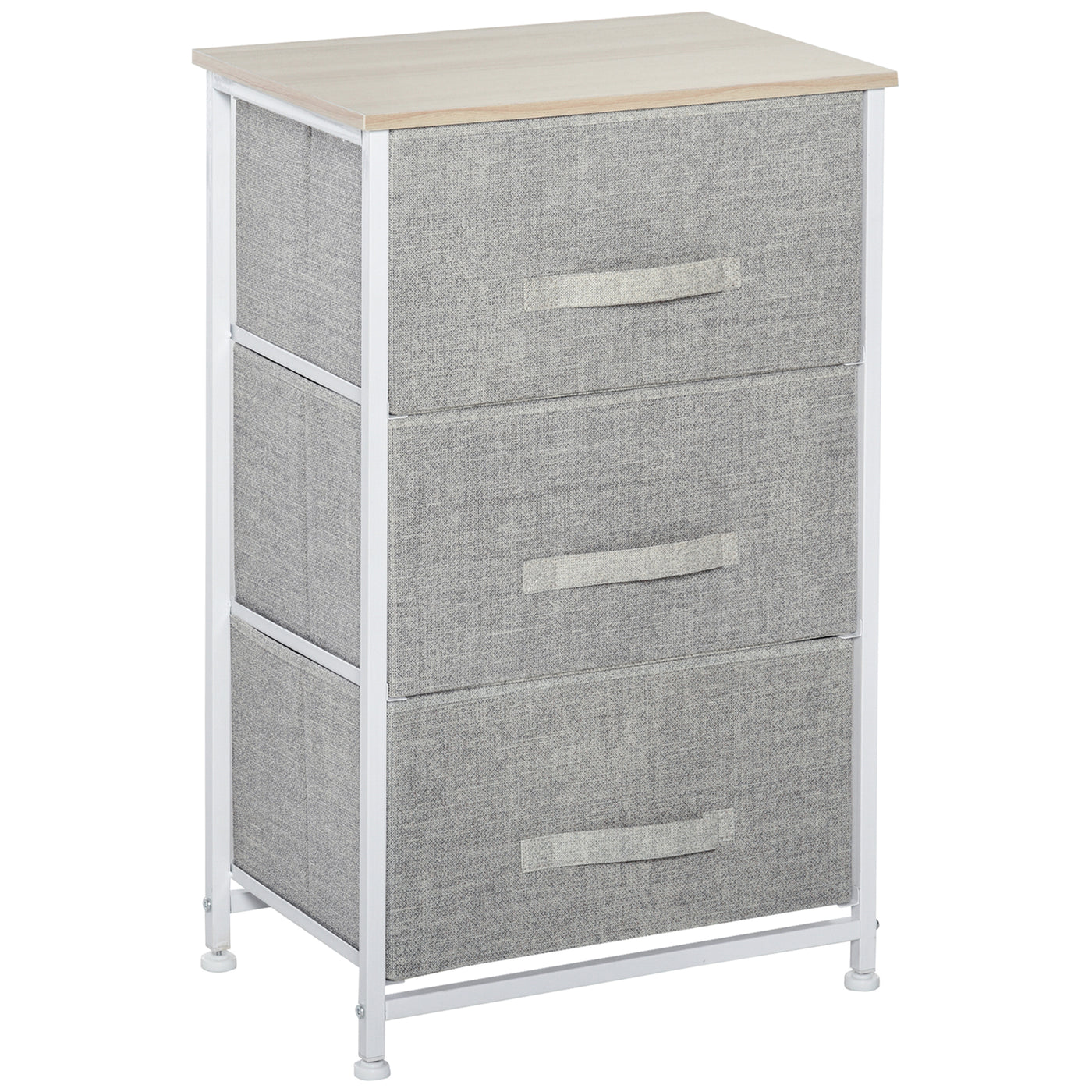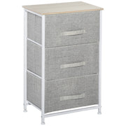 HOMCOM Vertical 3-Tier Linen Drawer Cabinet Organizer Storage Dresser Tower with Metal Frame Adjustable Feet for Living Room, Bathroom, Kitchen, White, Oak and Light Grey - White, Oak, Light Grey