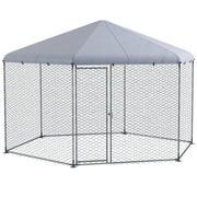 PawHut Chicken Coop for 10-15 Chickens, Hens, Rabbits, Ducks, Outdoor Garden Chicken Run, 4 x 3.5 x 2.6m - Silver