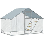 PawHut Walk-in Chicken Run w/ Cover, Feeding Door, Hanging Feeder, Perch, for 6-8 Poultry - Silver