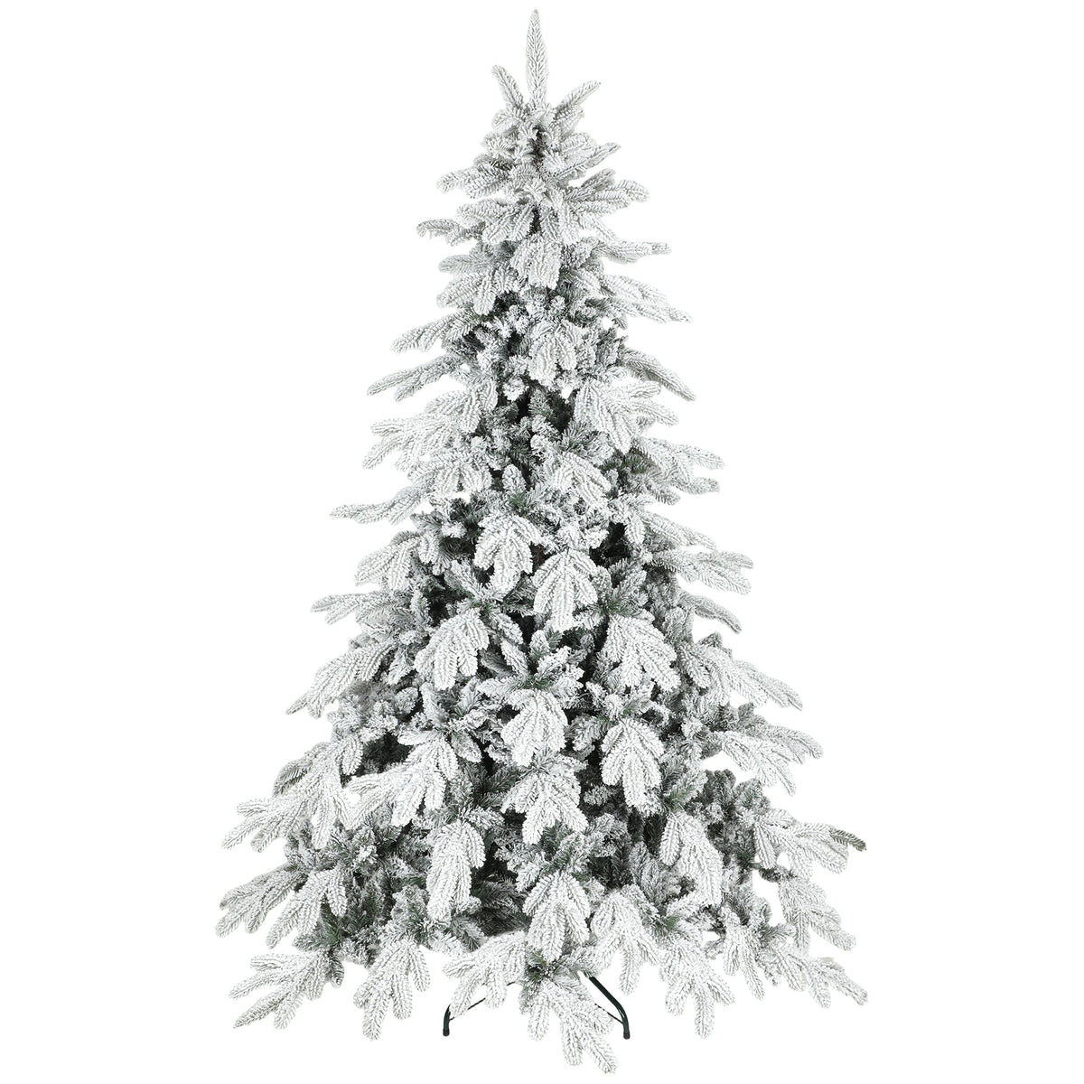 HOMCOM 7ft Super Flocked Christmas Tree - Green/White - Green
