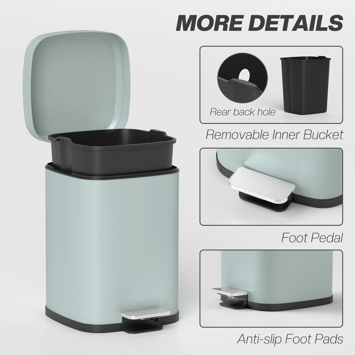 HOMCOM 12L Modern Boxy Metal Home Kitchen Bin - Light Green - Light Green