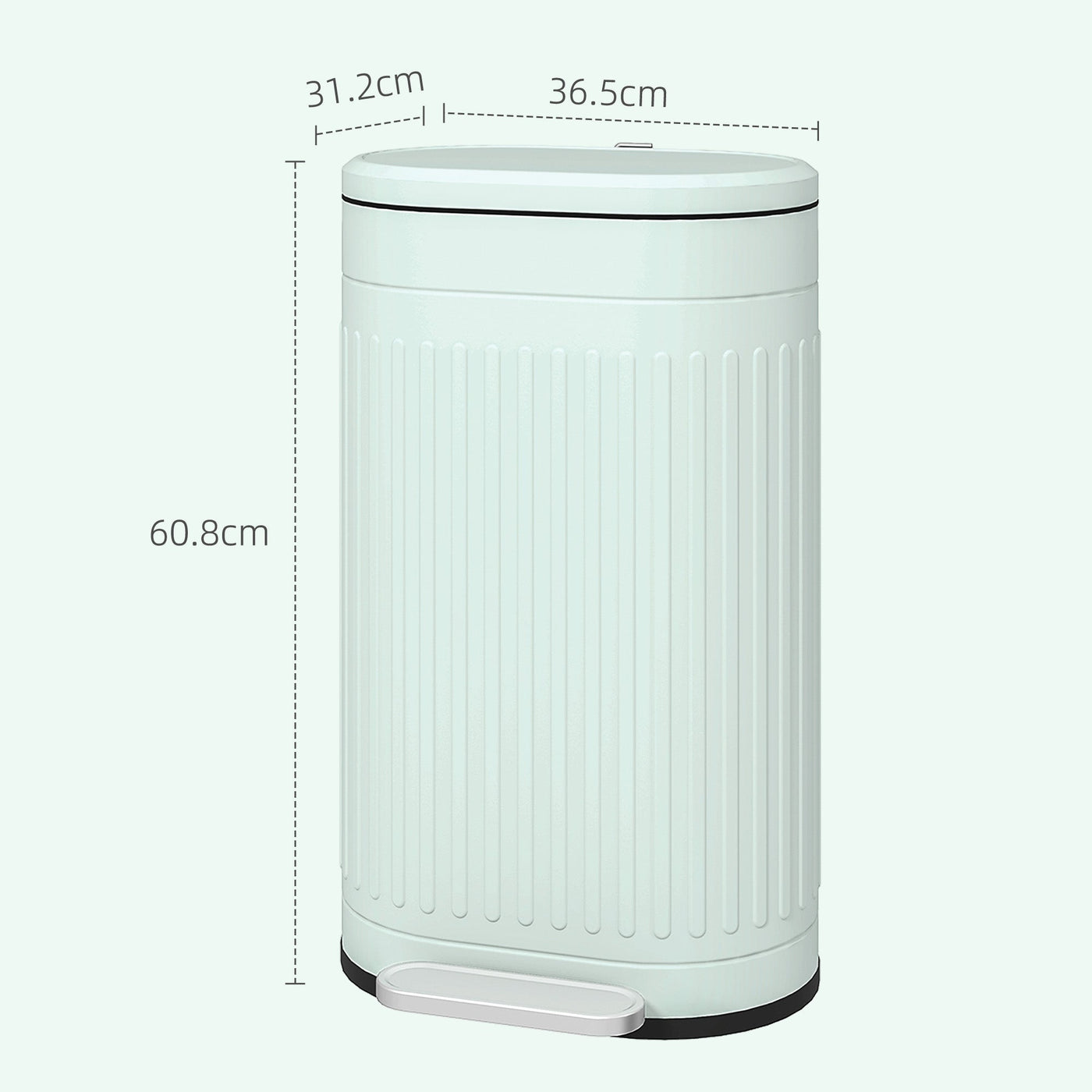 HOMCOM 30L Metal Kitchen Bin, with Soft-Close Lid - Light Green - Light Green