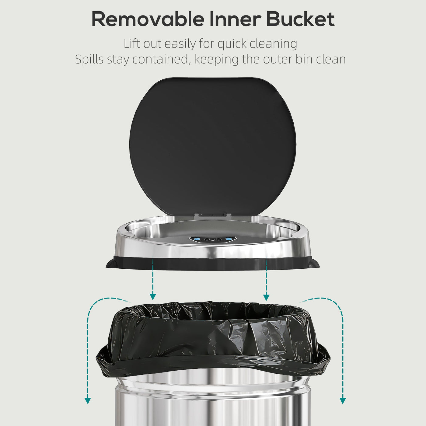 HOMCOM 42L Stainless Steel Sensor Bin - Silver Tone