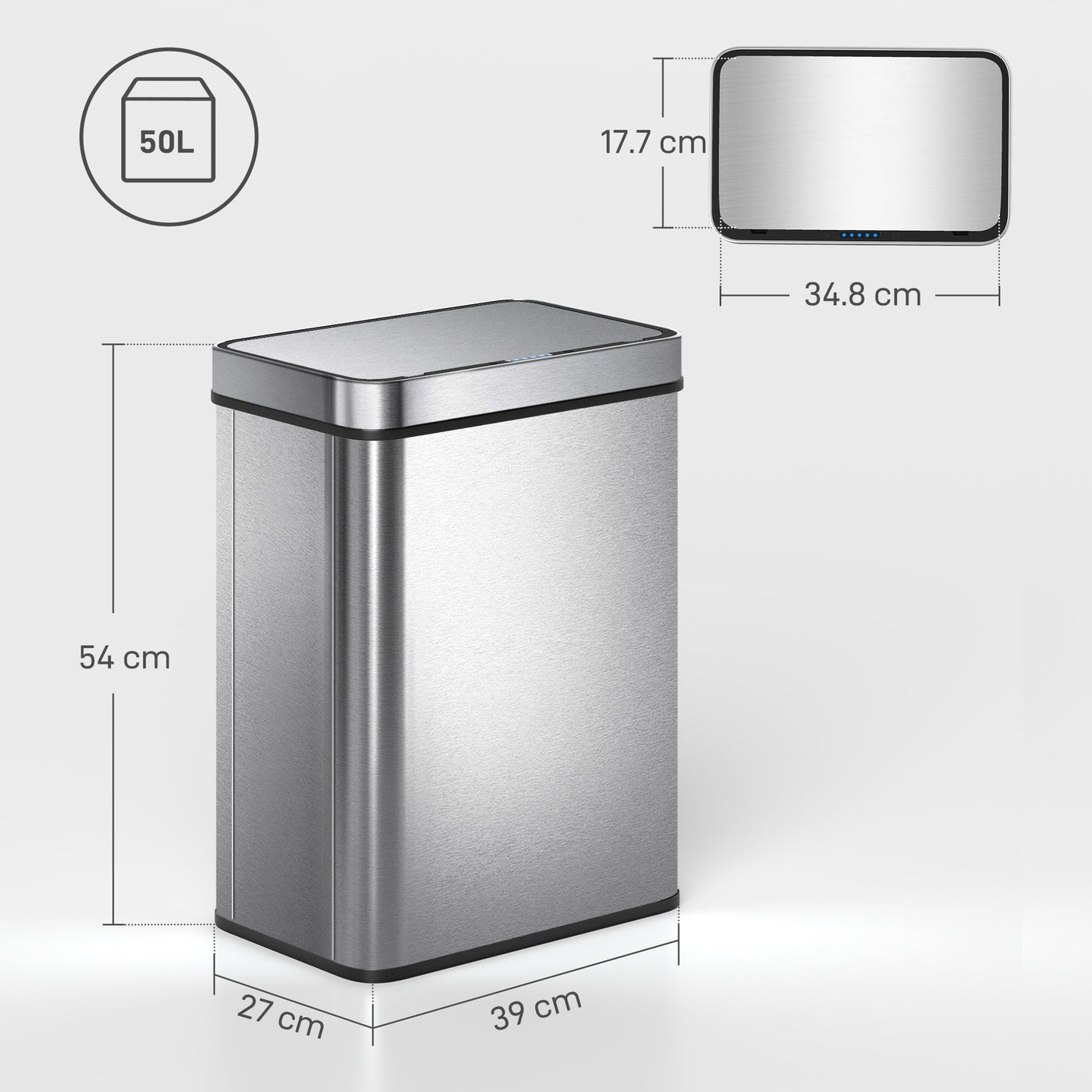 HOMCOM 50 L Sensor Can, Sensor Bin with Soft-Close Lid, Fingerprint-Proof Stainless Steel, Silver Tone - Silver Tone