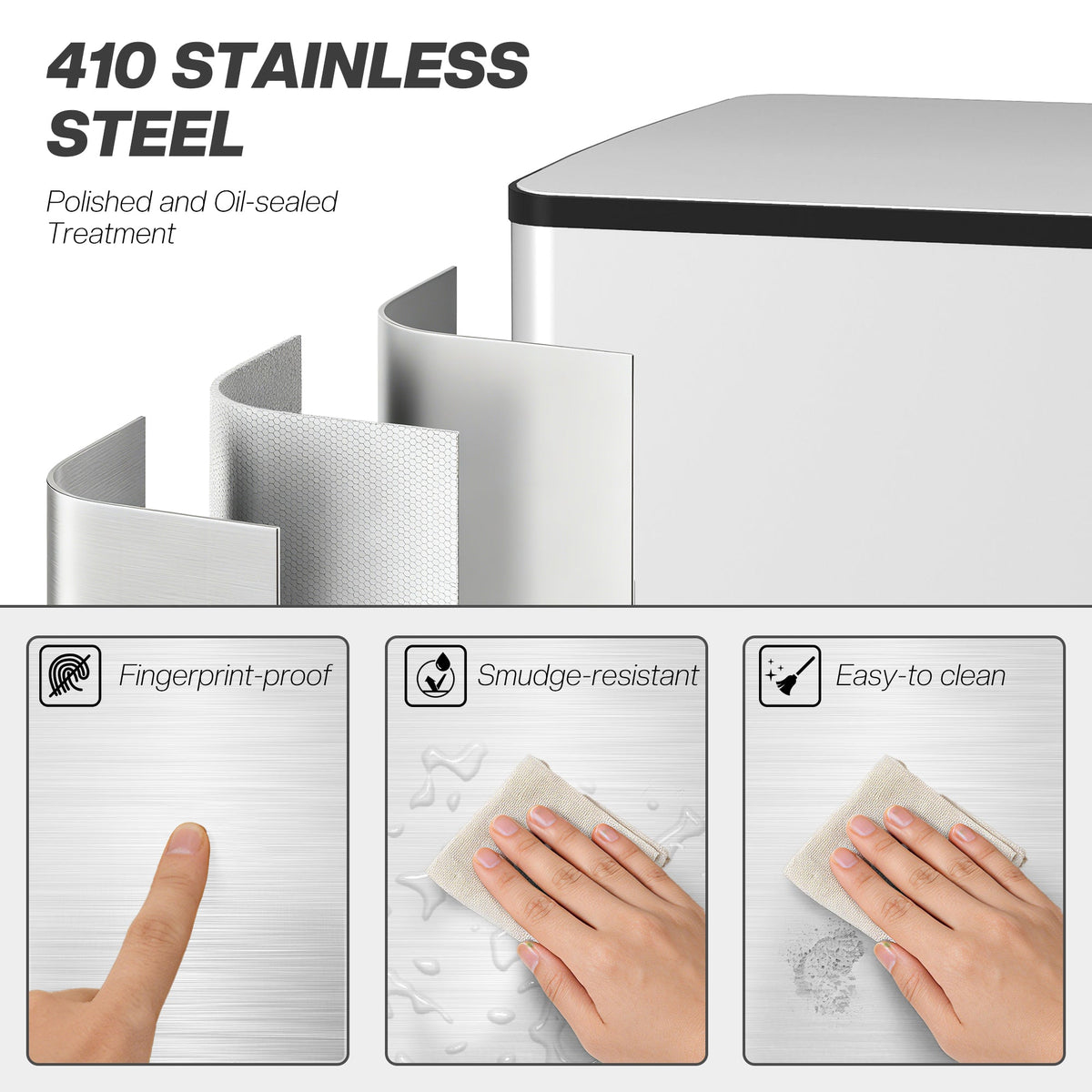 HOMCOM 50L Dual Compartment Stainless Steel Bin, with Deodoriser Holders - Silver - Silver