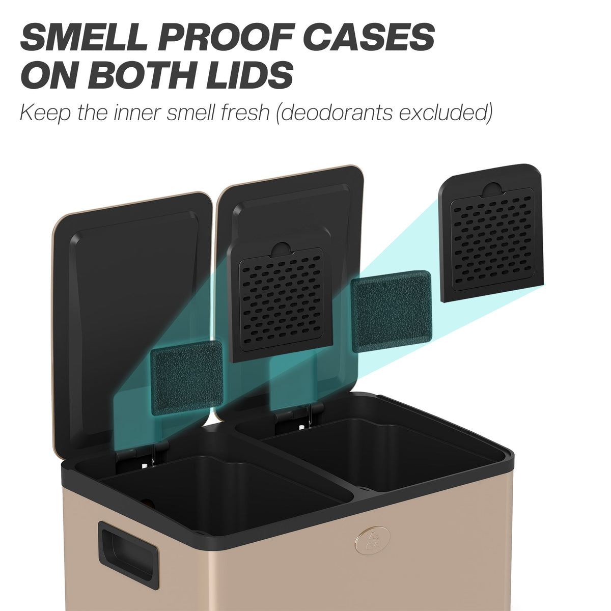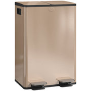 HOMCOM 56L Dual Compartment Stainless Steel Bin, with Deodoriser Holders - Gold Tone - Gold Tone