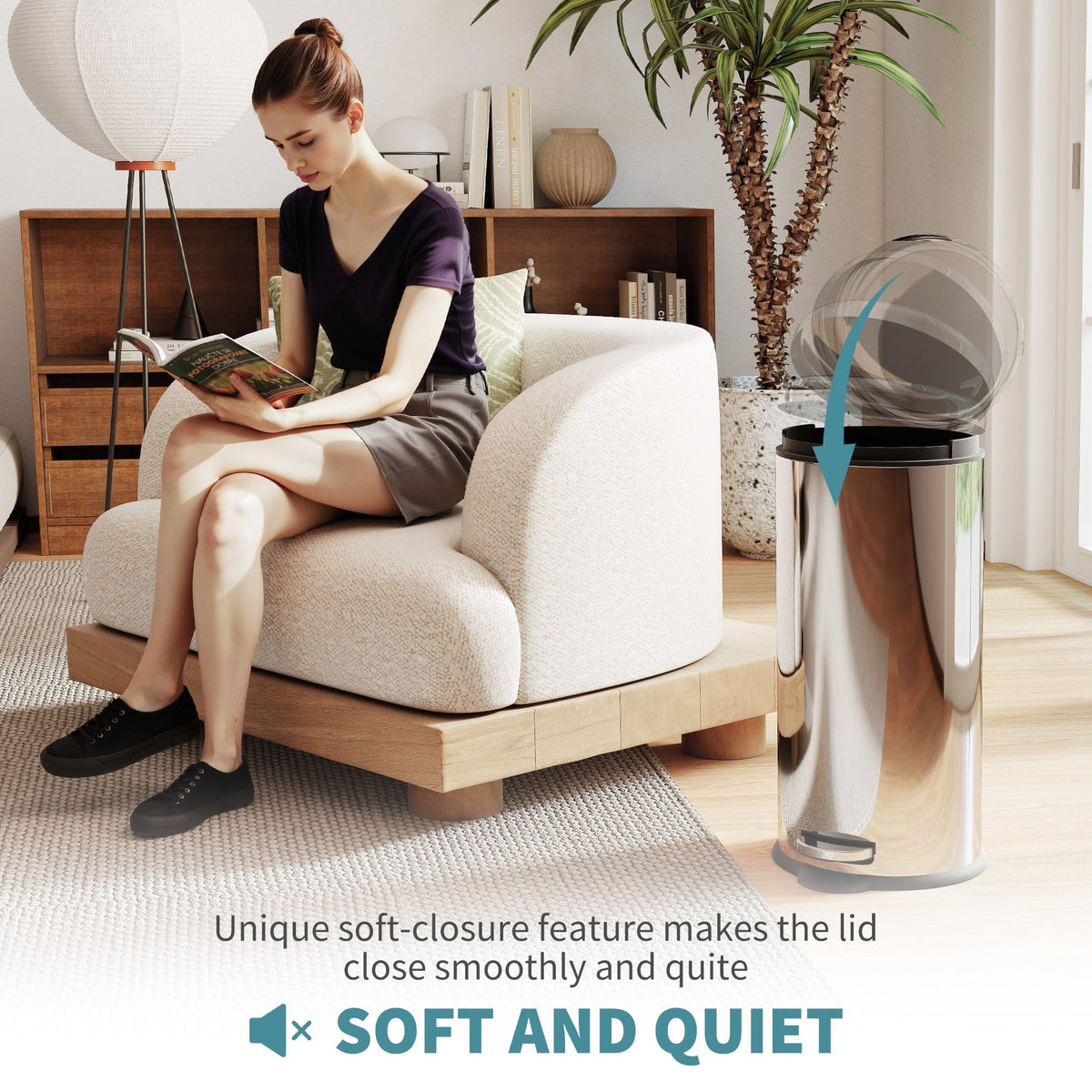 HOMCOM Foot Pedal Bin Stainless Steel Metal Waste Rubbish Lid Kitchen Garbage 30L Silver - Black and silver