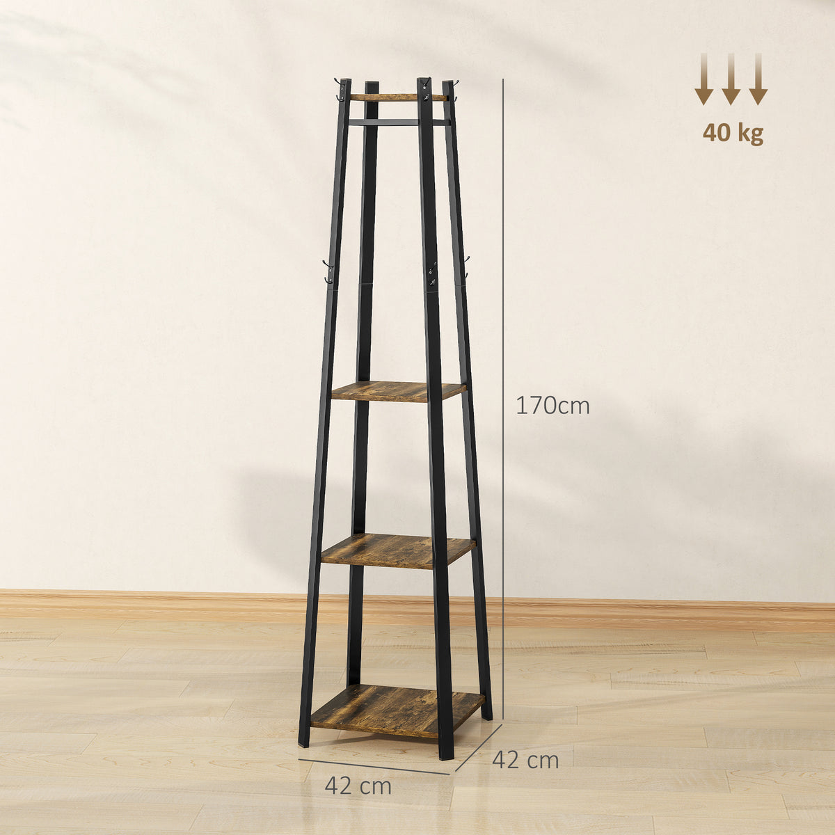 HOMCOM Compact Freestanding Coat Rack - Black/Brown - Rustic Brown
