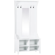HOMCOM Hallway Furniture Set Shoe Bench Storage Mirror Cabinet Coat Rack Multiple Cubes Hangers Organiser Shelves w/ 4 Hooks - White
