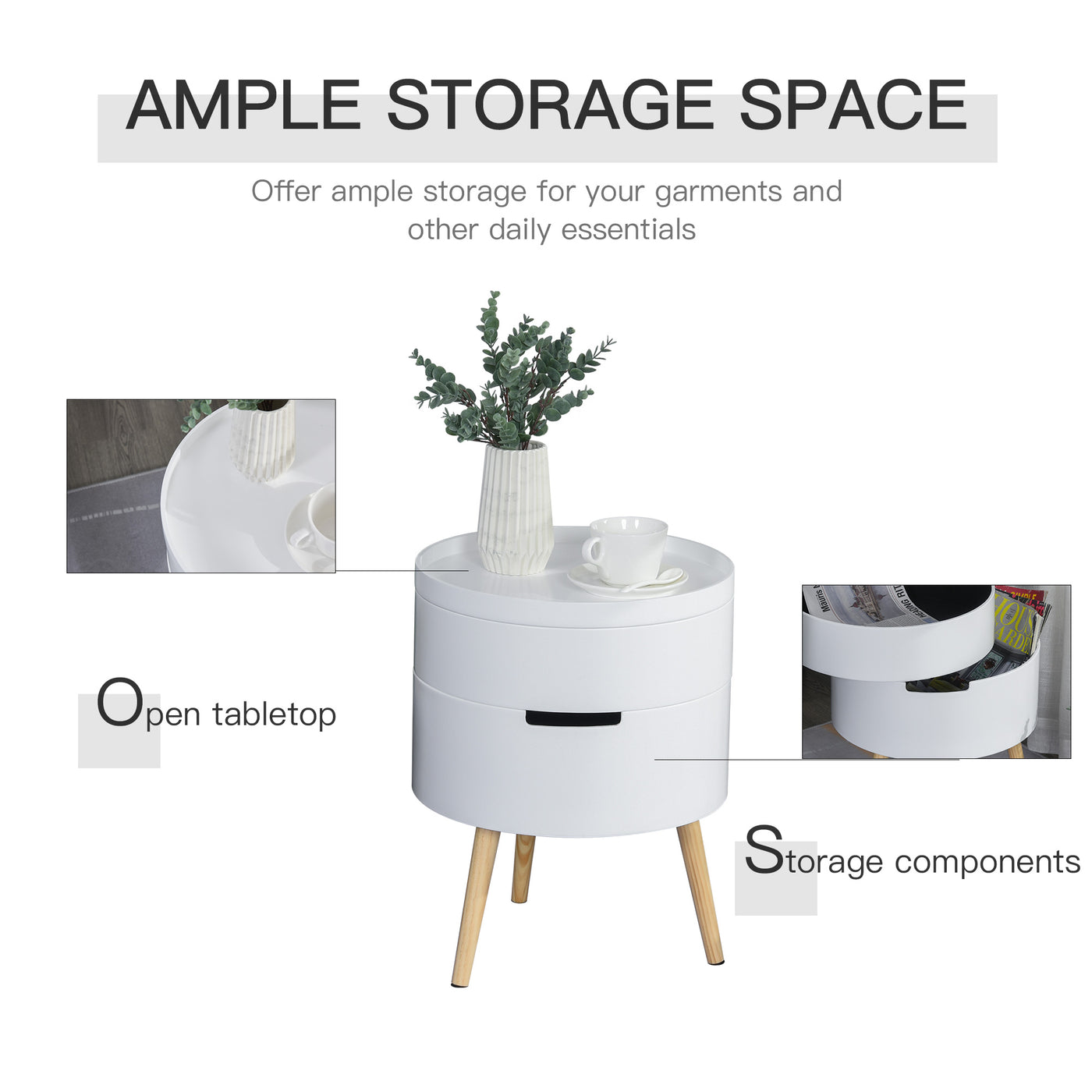 HOMCOM 3-Tier Coffee Table, Round End Table with 2 Hidden Compartments and Detachable Tray, Side Table with Storage for Living Room, White - White