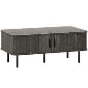 HOMCOM Coffee Table with Storage, Living Room Table with Slatted Tambour Sliding Doors and Foot Pads, Rectangular Coffee Table with Elevated Base for Living Room, Grey Wood-Effect - Grey