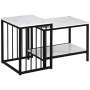 HOMCOM Modern Coffee Table Set of Two, Marble-Effect Nesting Side Tables with Steel Frame for Living Room, White, Black