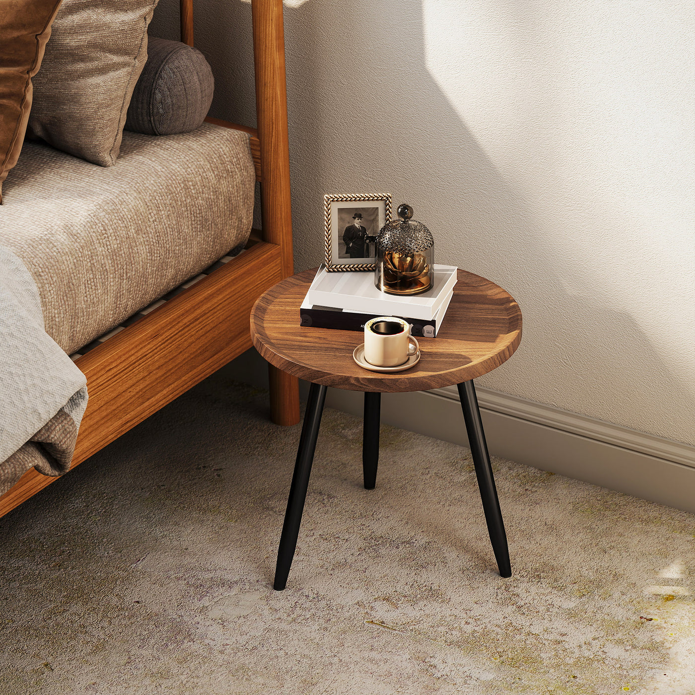 HOMCOM Modern Round Coffee Table with Steel Frame for Small Space, Sofa Beside, Living Room, Bedroom, Chestnut Wood Effect - Chestnut