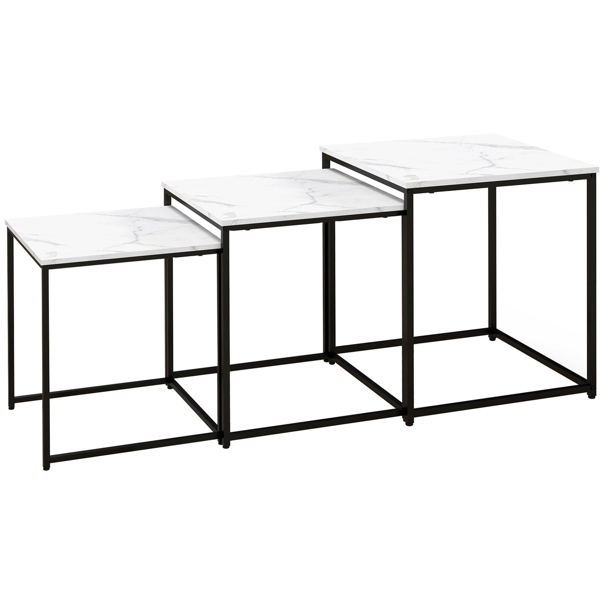 HOMCOM Three Nest of Tables, Marble Effect Finish