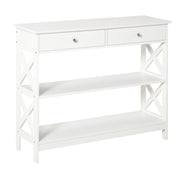 HOMCOM Console Table Side Desk w/ Shelves Drawers Open Top X Support Frame Living Room Hallway Home Office Furniture White - White