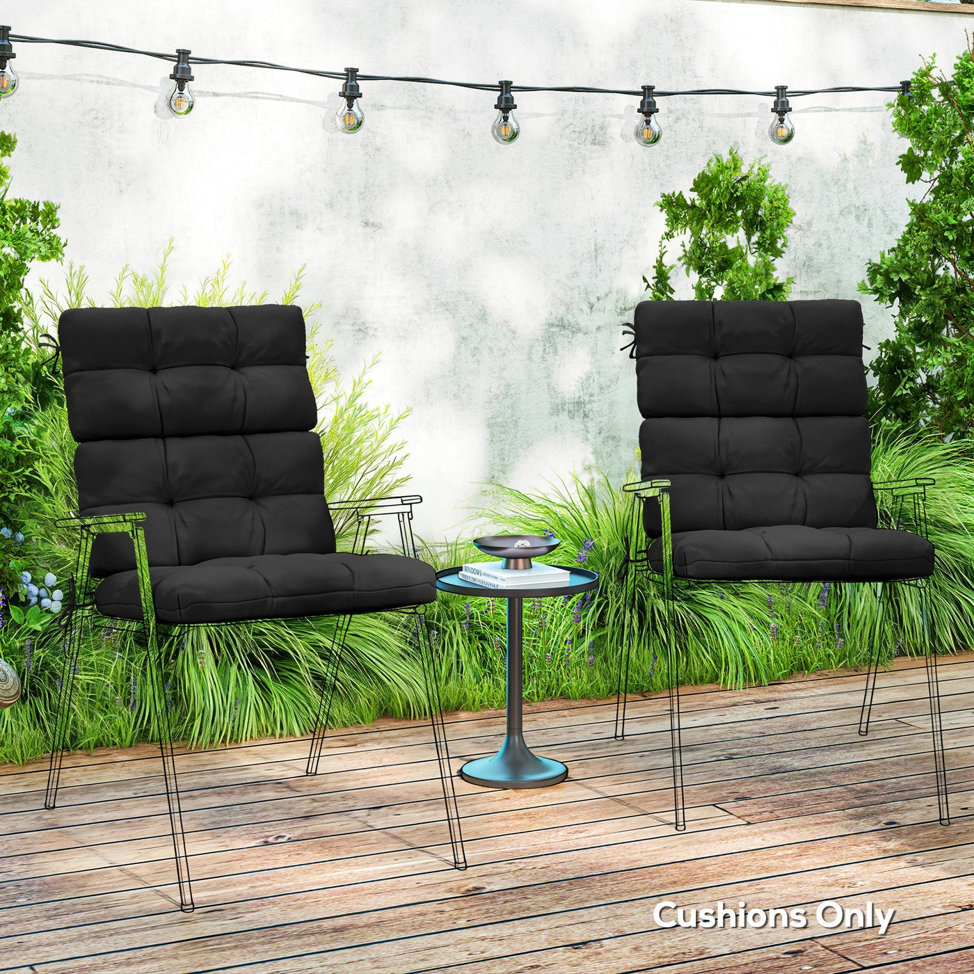 Outsunny 2-Piece Seat Cushion Replacement with Backrest, Garden Patio Chair Cushions Set with Ties, Black - Black
