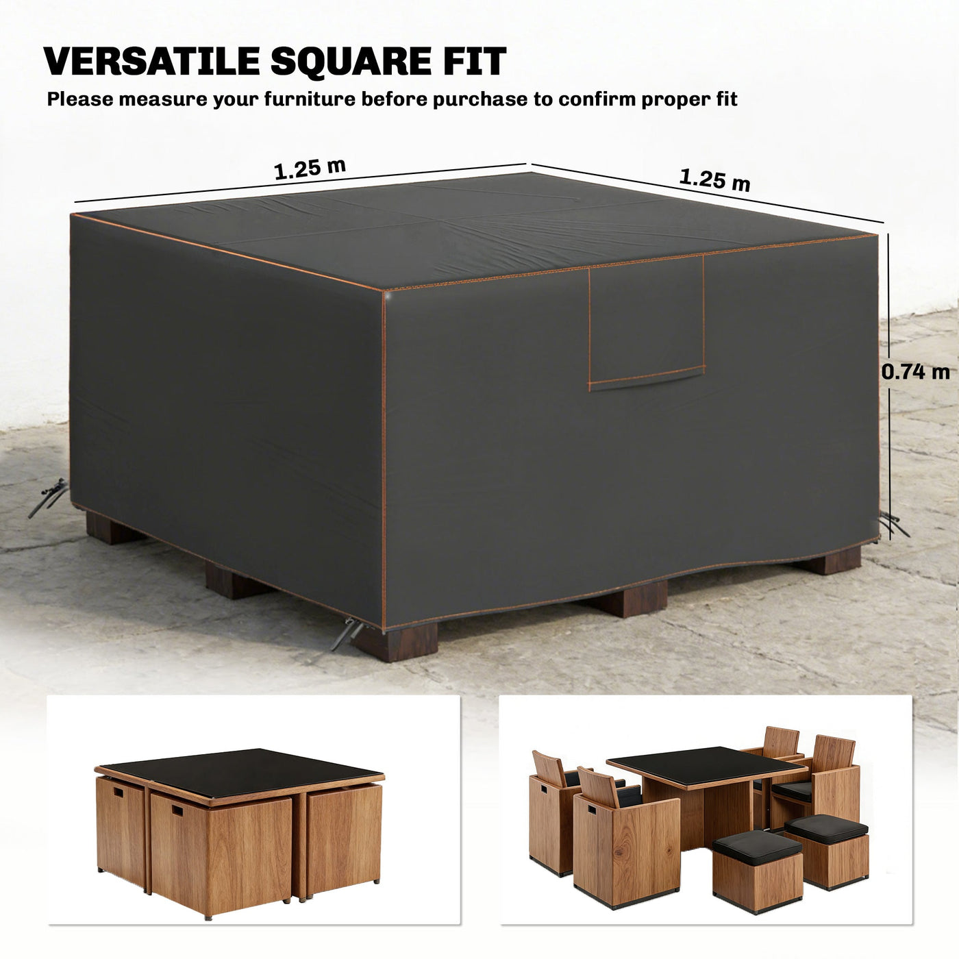 Outsunny Garden Furniture Cover, Waterproof Patio Furniture Cover with Air Vent, 420D Oxford Fabric, 125 x 125 x 74 cm, Black - Black