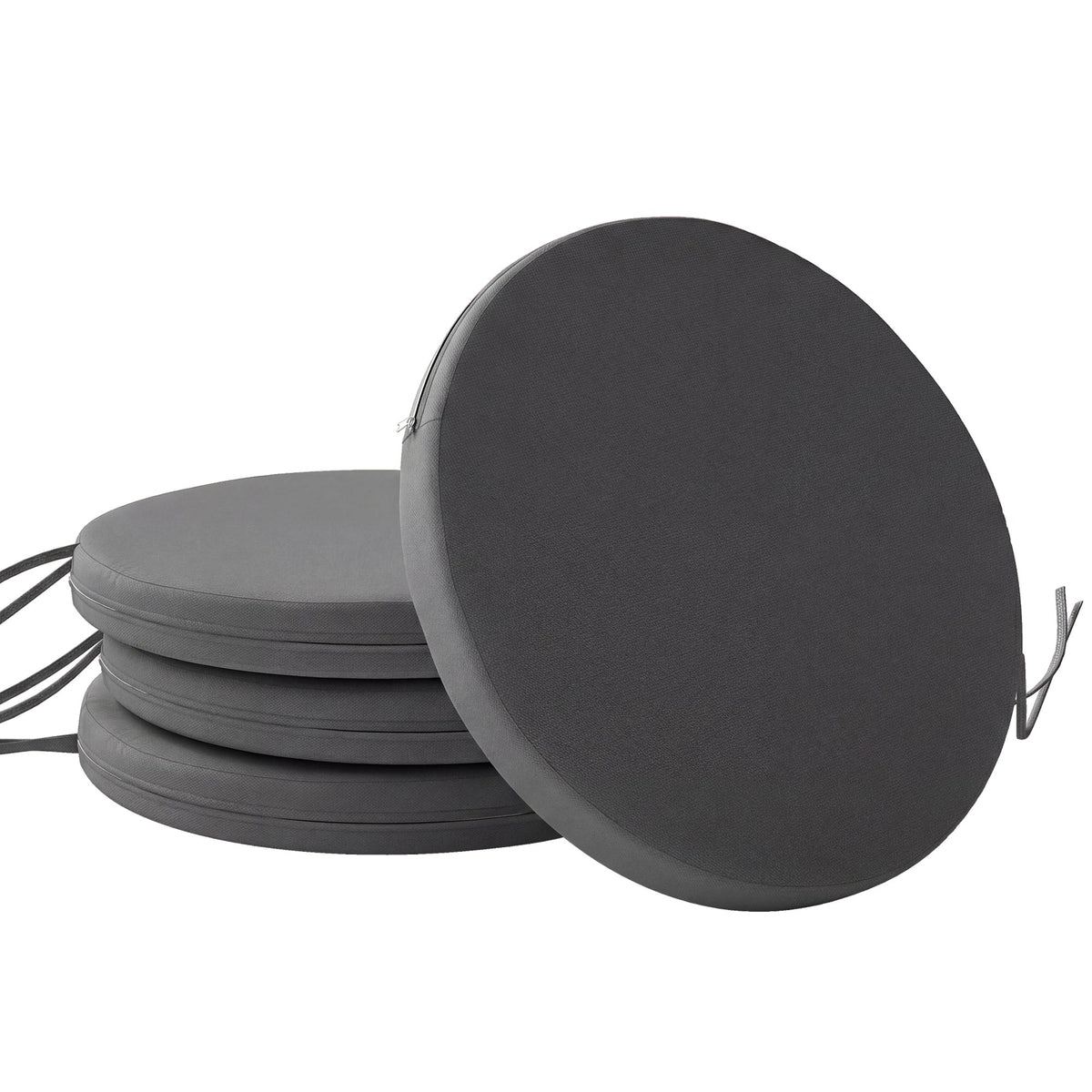 Outsunny Outdoor Bistro Chair Cushions Set of 4 with Removable Cover, 41 x 41 x 5 cm Round Seat Cushions with Ties, Dark Grey - Dark Grey