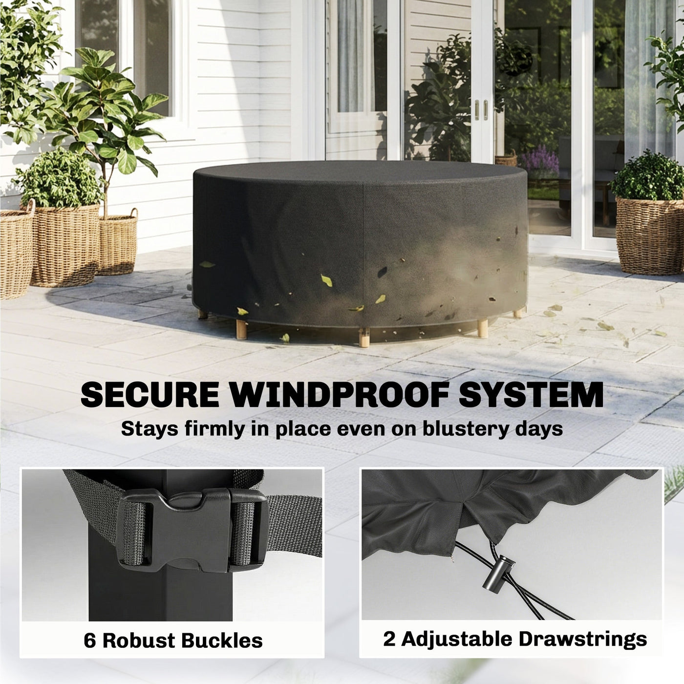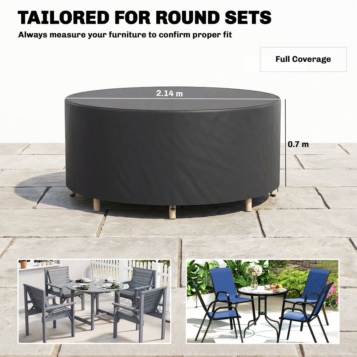 Outsunny Round Garden Furniture Cover, Waterproof Garden Table Cover, 420D Heavy Duty Oxford for Outdoor, Φ214 x 70 cm, Black - Black