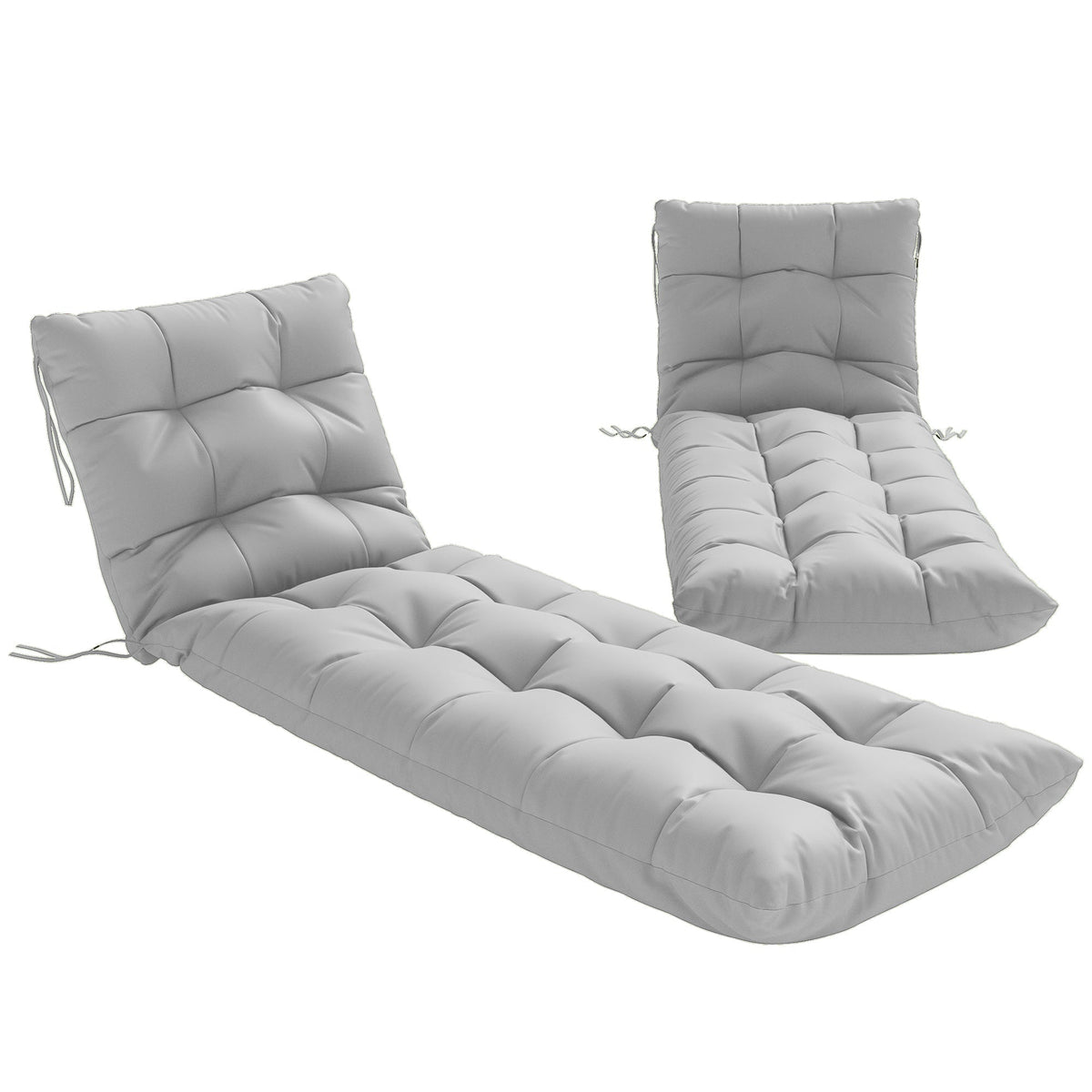 Outsunny Sun Lounger Cushions Only, Garden Lounge Chair Cushions Set of 2, Sunbed Replacement Pads with 4 Ties, Light Grey - Light Grey