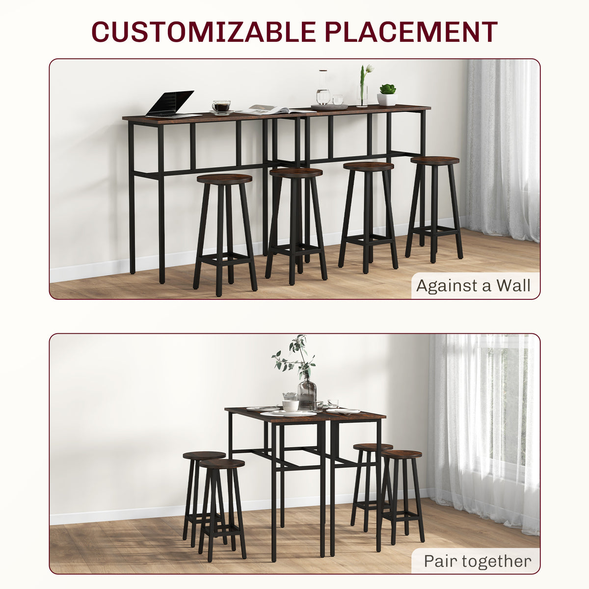 HOMCOM 6-Piece Bar Table Set, Counter Height Kitchen Dining Set with 2 High Tables & 4 Stools, Space Saving Compact Bar Furniture for Small Kitchens and Flats, Multiple Arrangements, Rustic Brown - Rustic Brown
