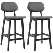 HOMCOM Bar Stools Set of 2, Breakfast Bar Chairs, PU Leather Upholstered Kitchen Stools with Backs, Footrests and Solid Wood Legs, Dark Grey - Dark Grey