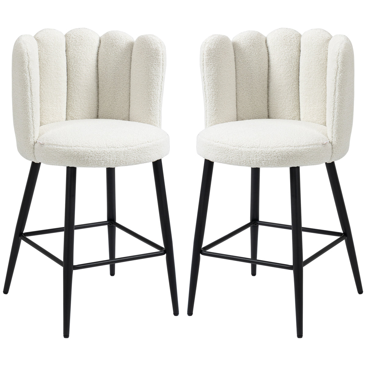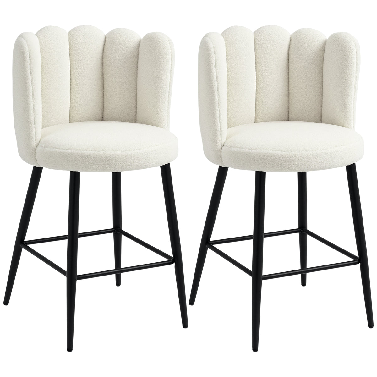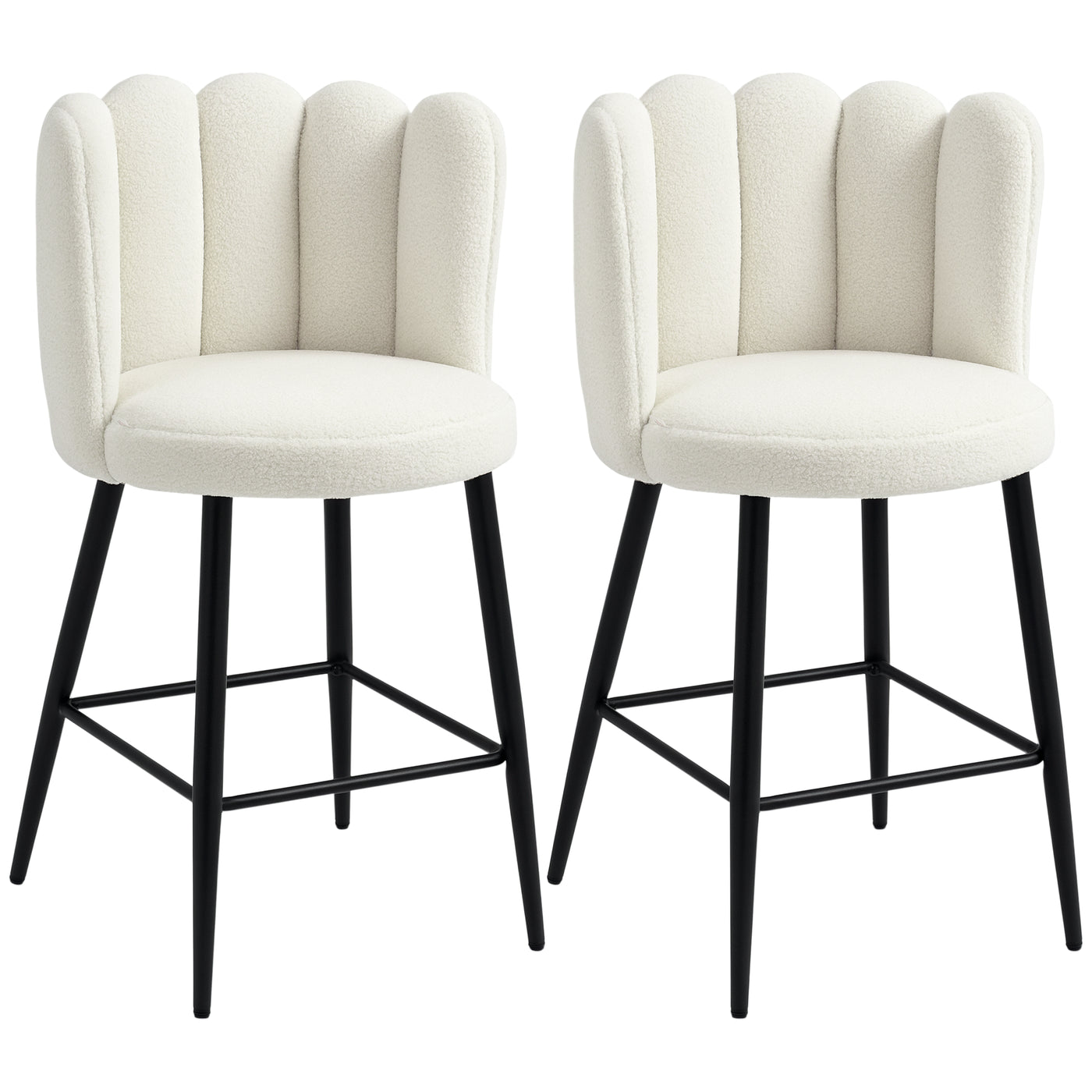 HOMCOM Bar Stools Set of 2, Faux Cashmere Upholstered Breakfast Bar Chairs, Modern Kitchen Stools with Backs, Footrest and Steel Base, Cream - Cream