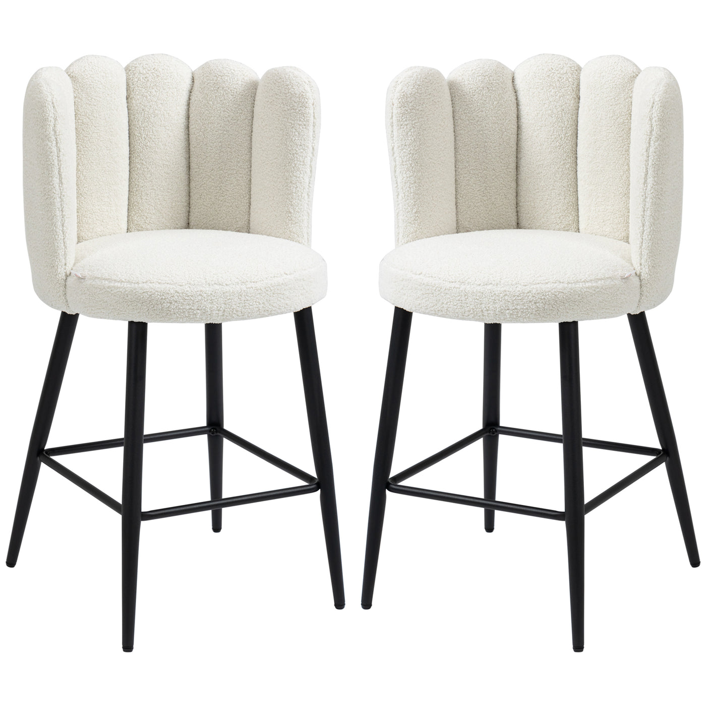 HOMCOM Bar Stools Set of 2, Faux Cashmere Upholstered Breakfast Bar Chairs, Modern Kitchen Stools with Backs, Footrest and Steel Base, Cream