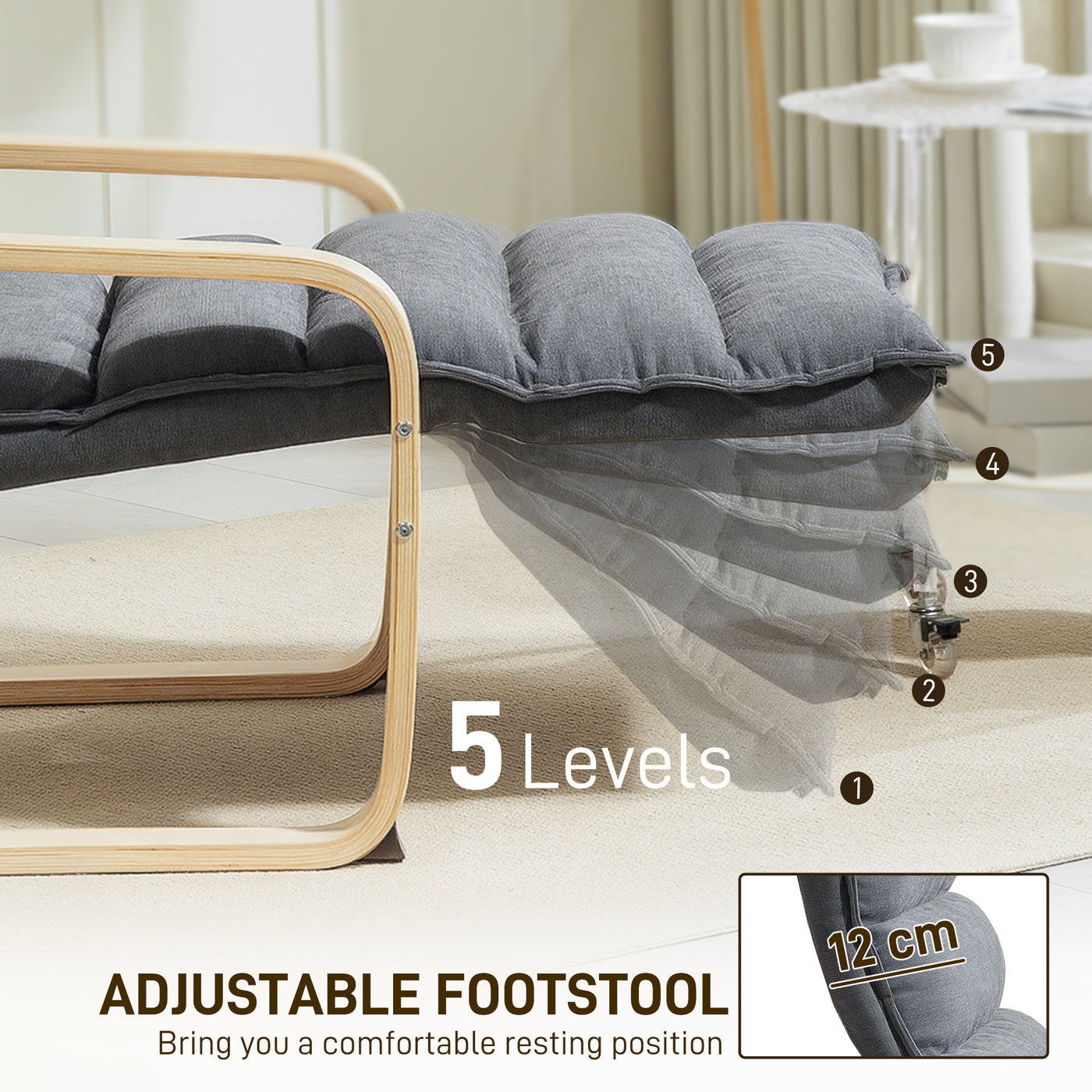 HOMCOM Curved Wooden Accent Chair, with Adjustable Footrest - Drak Grey