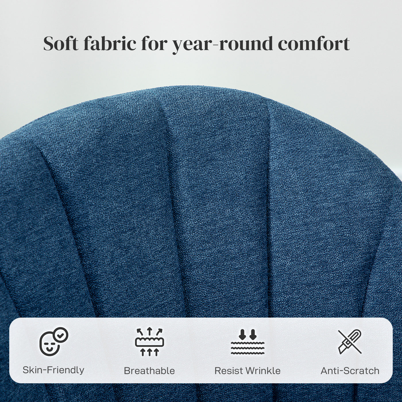 HOMCOM Dining Chairs Set of 2, Modern Upholstered Kitchen Chairs with Metal Legs, Shell Backrest and Padded Seat for Dining Room, Bedroom, Living Room, Vanity, Blue - Blue