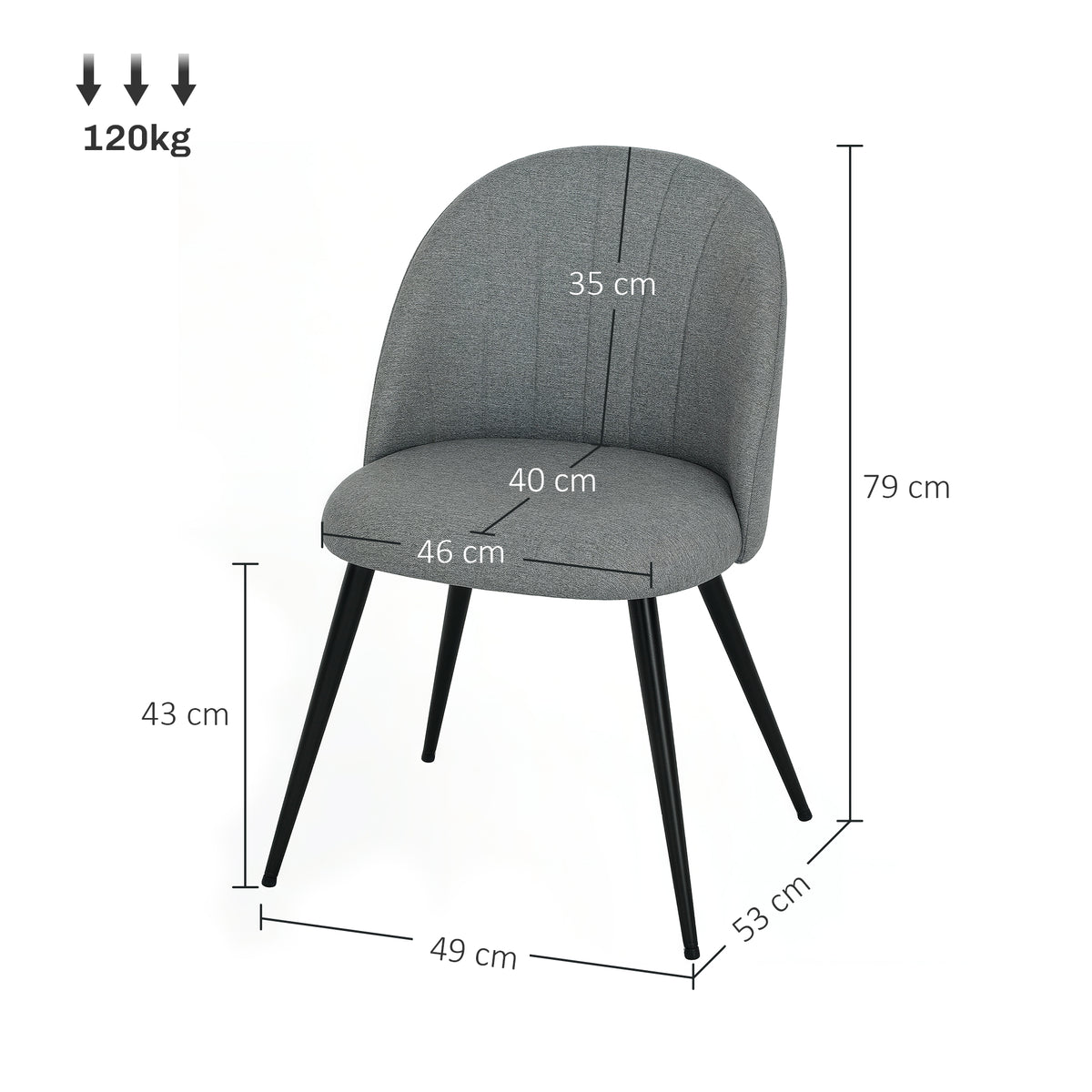 HOMCOM Dining Chairs Set of 2, Modern Upholstered Kitchen Chairs with Metal Legs, Shell Backrest and Padded Seat for Dining Room, Bedroom, Living Room, Vanity, Grey - Grey