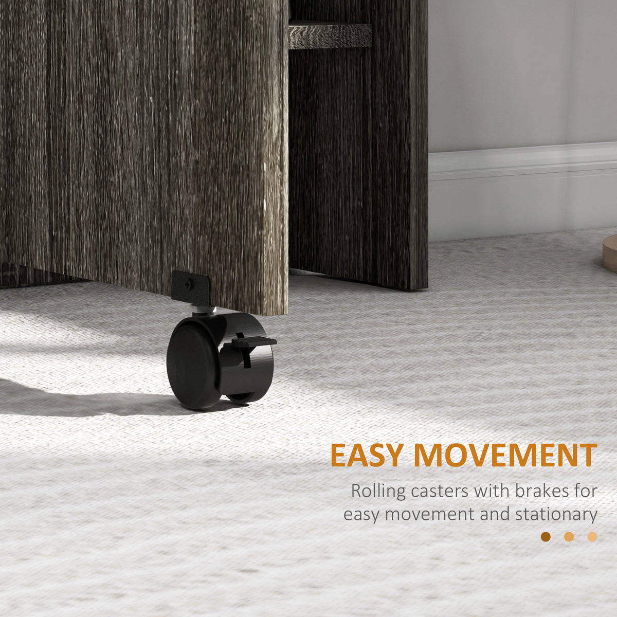 HOMCOM Folding Dining Table, Drop Leaf Table with 2-Tier Shelves, Rolling Casters, for Small Spaces, Kitchen, Grey - Grey
