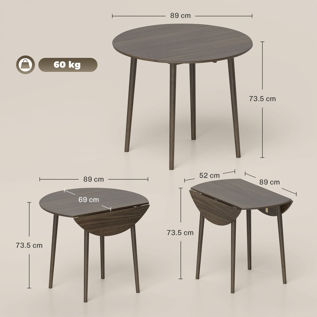 HOMCOM Folding Dining Table for 4, Round Drop Leaf Table, Modern Space Saving Small Kitchen Table with Wood Legs for Dining Room, Grey - Grey