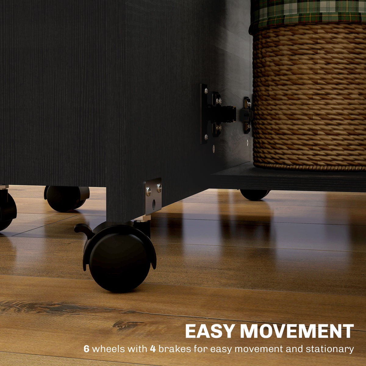 HOMCOM Multi-Storage Six-Person Drop Leaf Dining Table - Distressed Black - Black