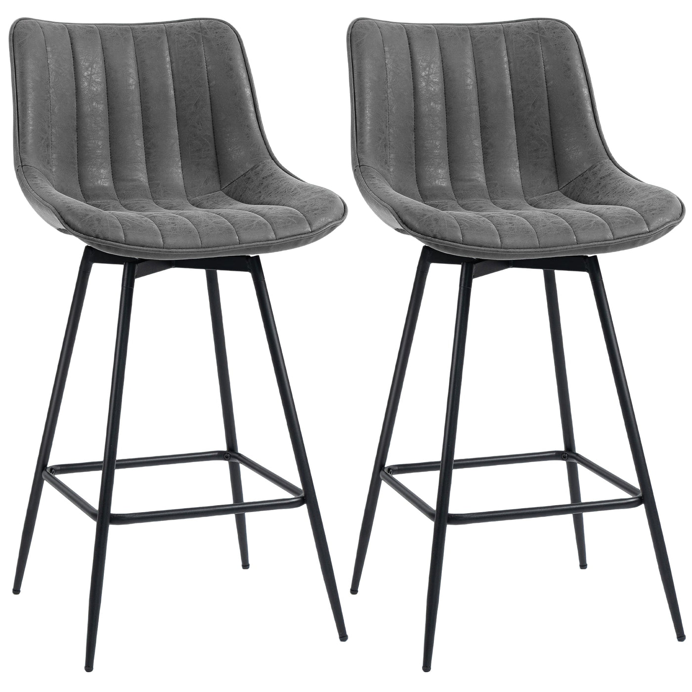 HOMCOM Set of 2 PU Leather Swivel Bar Stools - Grey - Grey