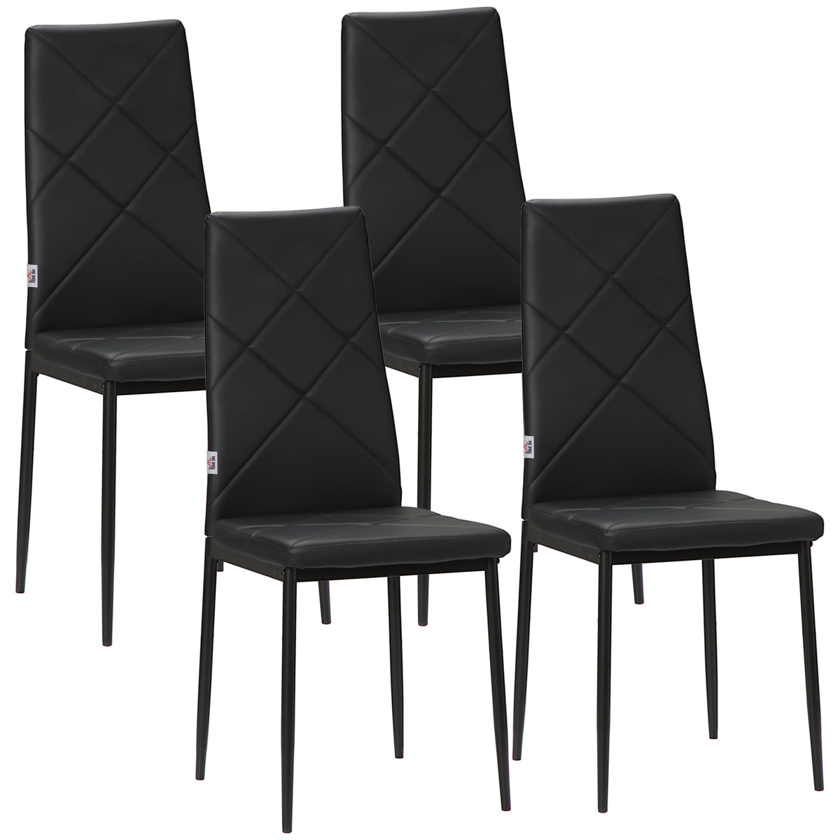 HOMCOM Set of 4 Faux Leather Dining Chairs - Black - Black