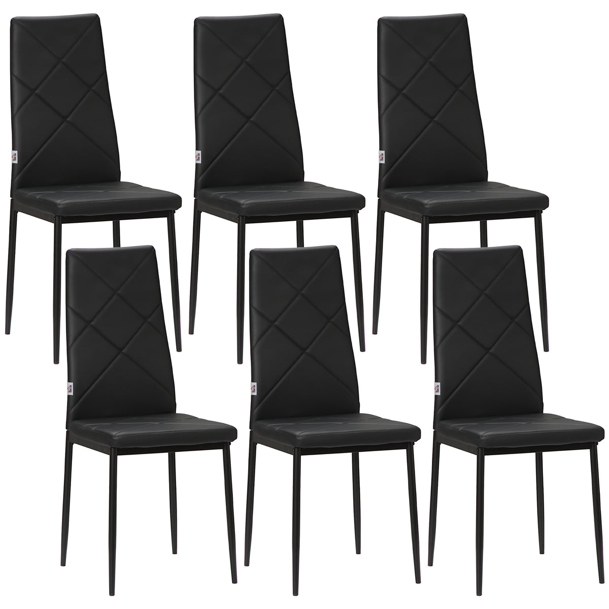 HOMCOM Set of 6 Faux Leather Dining Chairs - Black