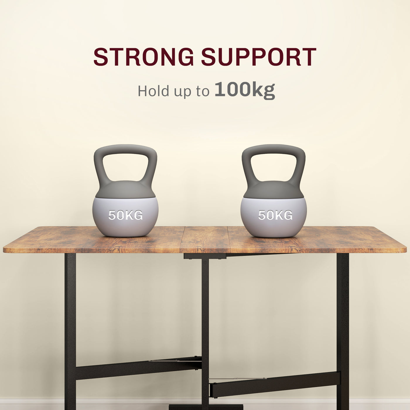HOMCOM Six-Seater Drop-Leaf Dining Table, with Wheels - Brown Wood-Effect - Rustic Brown