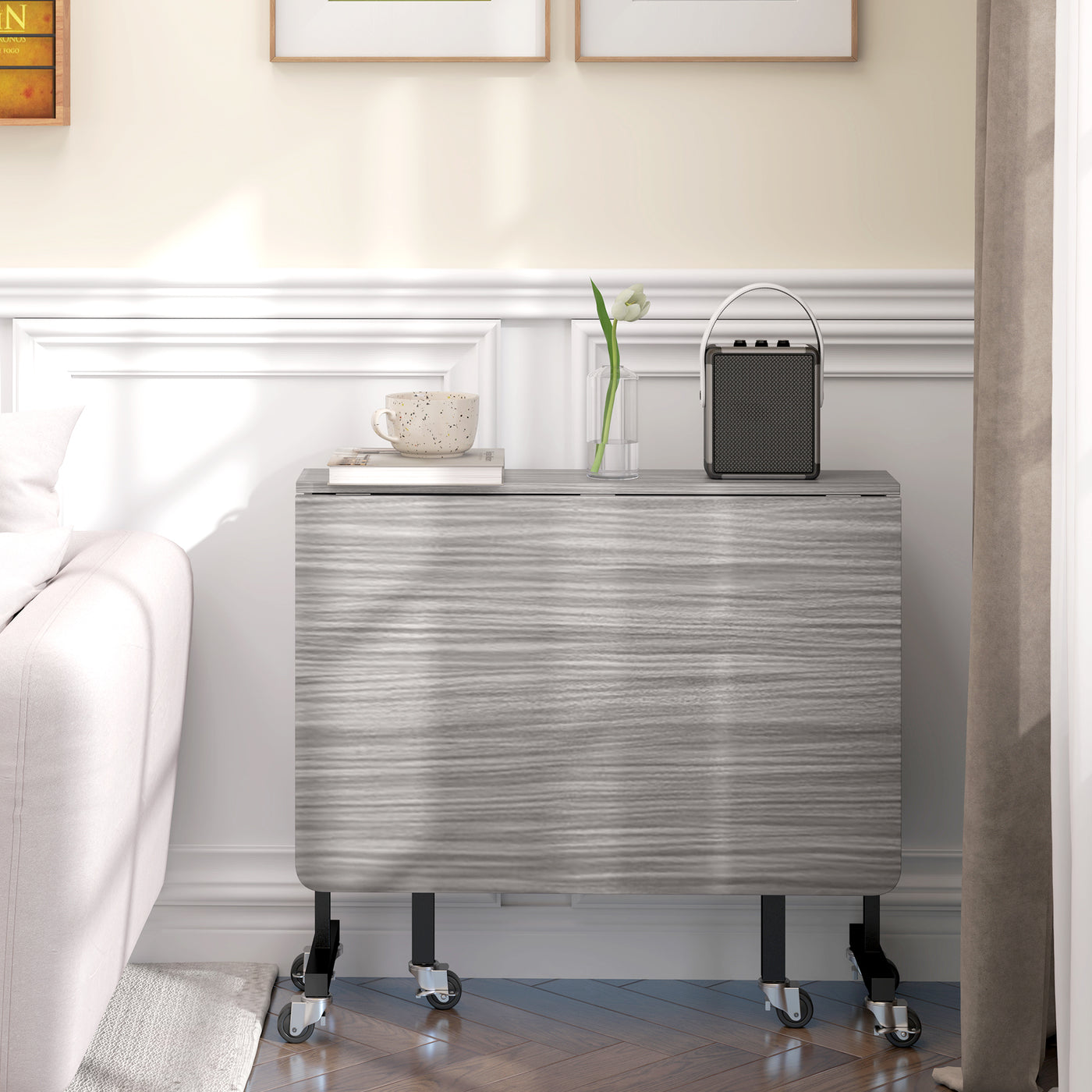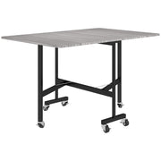 HOMCOM Six-Seater Drop-Leaf Dining Table, with Wheels - Grey Wood-Effect - Grey