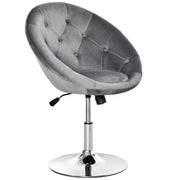 HOMCOM Swivel Dressing Stool, Velvet-feel Upholstered Vanity Chair, Adjustable Height Tub Makeup Chair with Button Tufting and Thick Padding for Bedroom, Grey